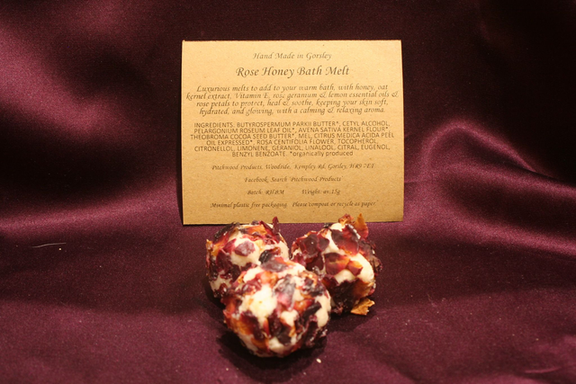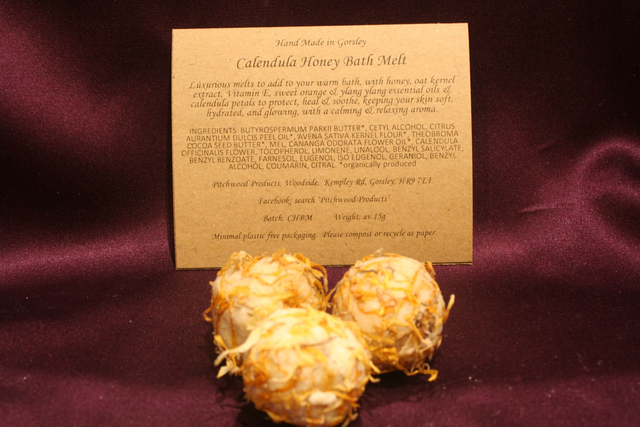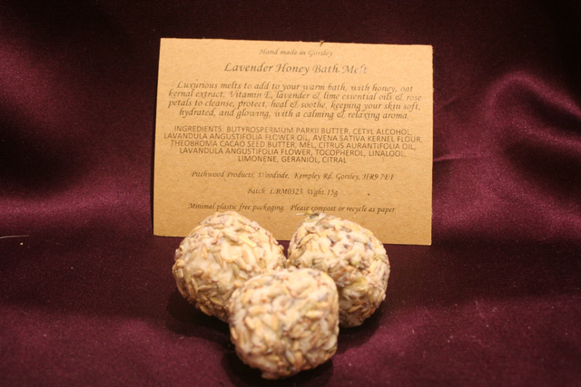 Luxurious melts (approx. 14g) to add to your hot bath, with honey, oat kernal extract, Vitamin E, lavender & lime/rose geranium & lemon/sweet orange & ylang ylang essential oils & lavender flowers/rose petals/calendula petals to cleanse, protect, heal & soothe, keeping your skin soft, hydrated, and glowing, with a calming & relaxing aroma. Basic melt ingredients: Butyrospermum parkii butter*, Cetyl alcohol, Avena sativa kernel flour*, Theobroma cacao seed butter*, Mel, Tocopherol, Linalool, Limonene, Geraniol, Citral. Lavender: Lavandula angustifolia flower oil*, Citrus aurantifolia oil*, Lavandula angustifolia flower. Rose: Pelagonium roseum leaf oil*, Citrus medica acida peel oil expressed*, Rosa centifolia flower, Citronellol, Eugenol, Benzyl benzoate. Calendula: Citrus aurantium dulcis peel oil*, Cananga odorata flower oil*, Calendula offiinalis flower, Benzyl salicylate, Benzyl benzoate, Farnesol, Eugenol, Iso eugenol, Benzyl alcohol, Coumarin. *organically produced